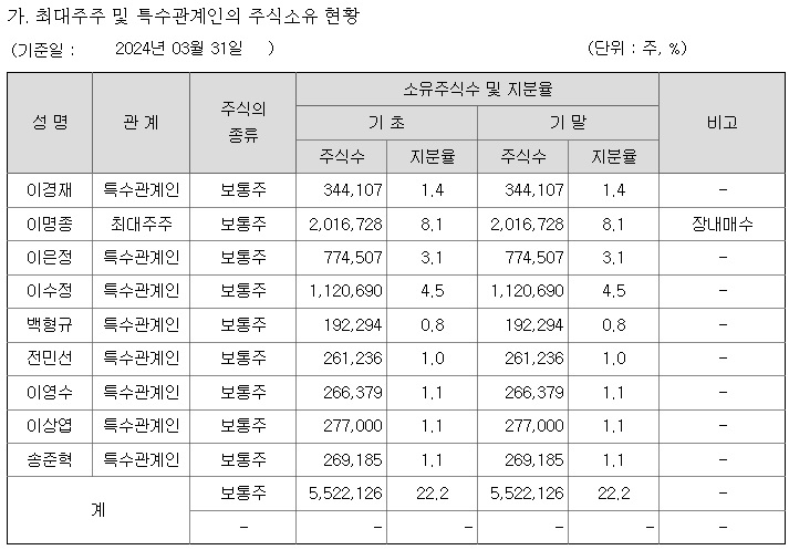 이경재 회장에서 이명종 대표로 경영권 승계가 이뤄진 것 자체가 이명족 대표의 경영능력을 보고 이뤄진 것도 아니고 오로지 혈연적으로 이경재 회장의 아들이기에 상장사 경영권을 물려준 것인데 이후 회사 경영은 나아지지도 않고 소액주주들엑 불신만 키우는 모습으로 일관하고 있습니다