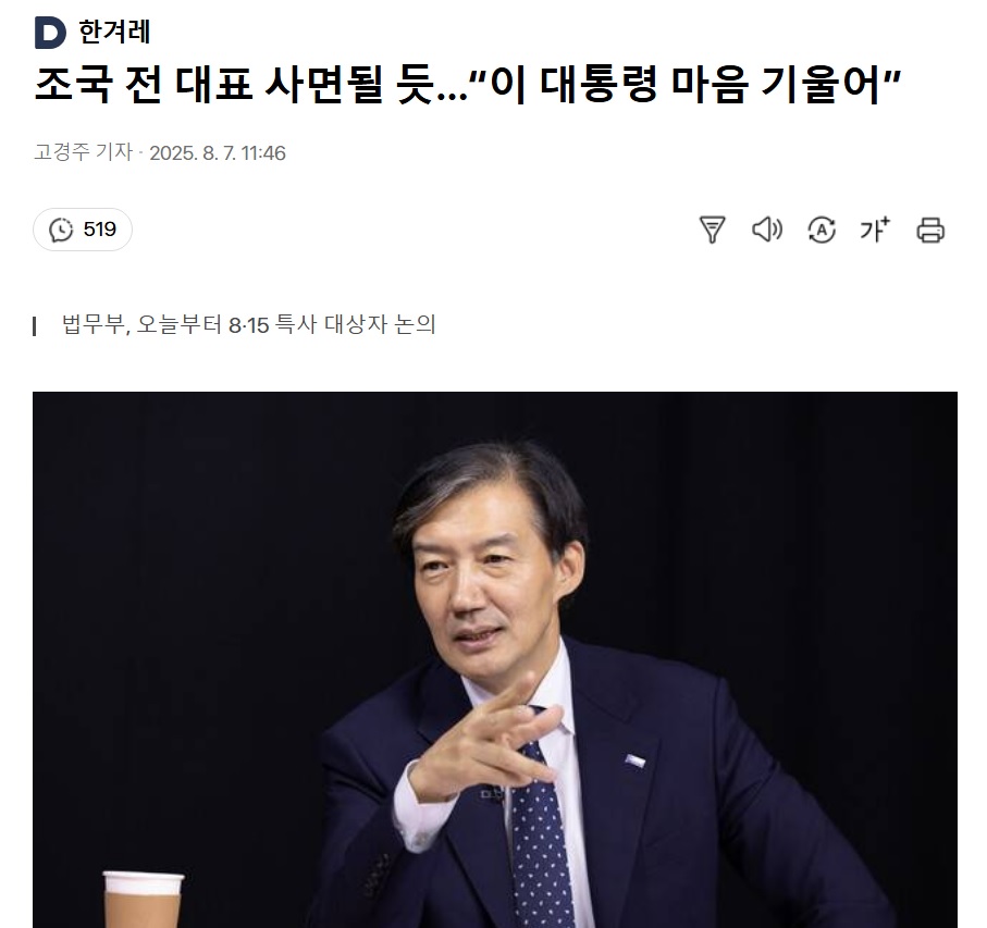 8·15 광복절 특별사면 대상자에 조국혁신당 조국 전 대표가 포함될 걸로 확인되었습니다