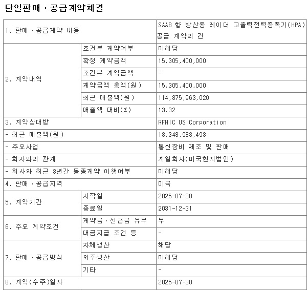 | RFHIC 2분기 실적어닝서프라이즈 방산부문 실적호전 지속 기대감 (0) | 2025.09.05 |