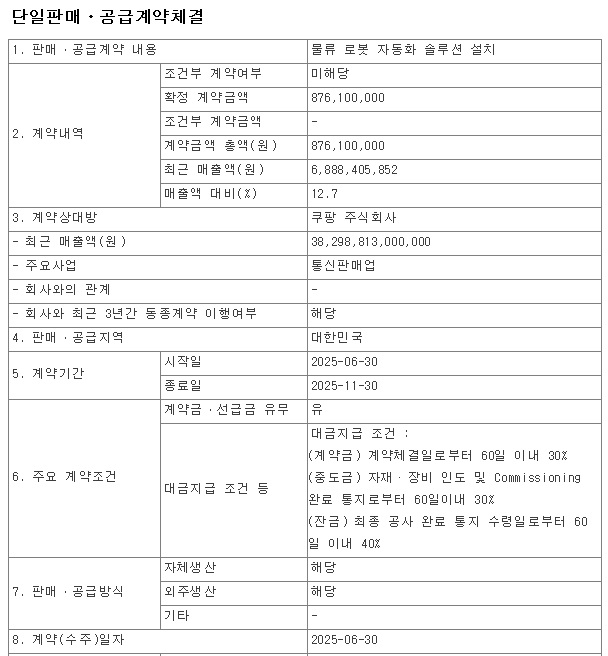 최근 국내 e커머스 1위 쿠팡이 올해 상반기 로봇 기술 등 투자를 2배 가까이 확대하면서 수혜 기대감이 커지고 있는데 아직은 규모의 경제를 달성하지 못해 적자를 기록하고 있지만 내년부터 분기별로 흑자를 달성하고 2027년에서는 규모의 경제를 달성해 온기로 흑자를 달성할 것이라고 합니다