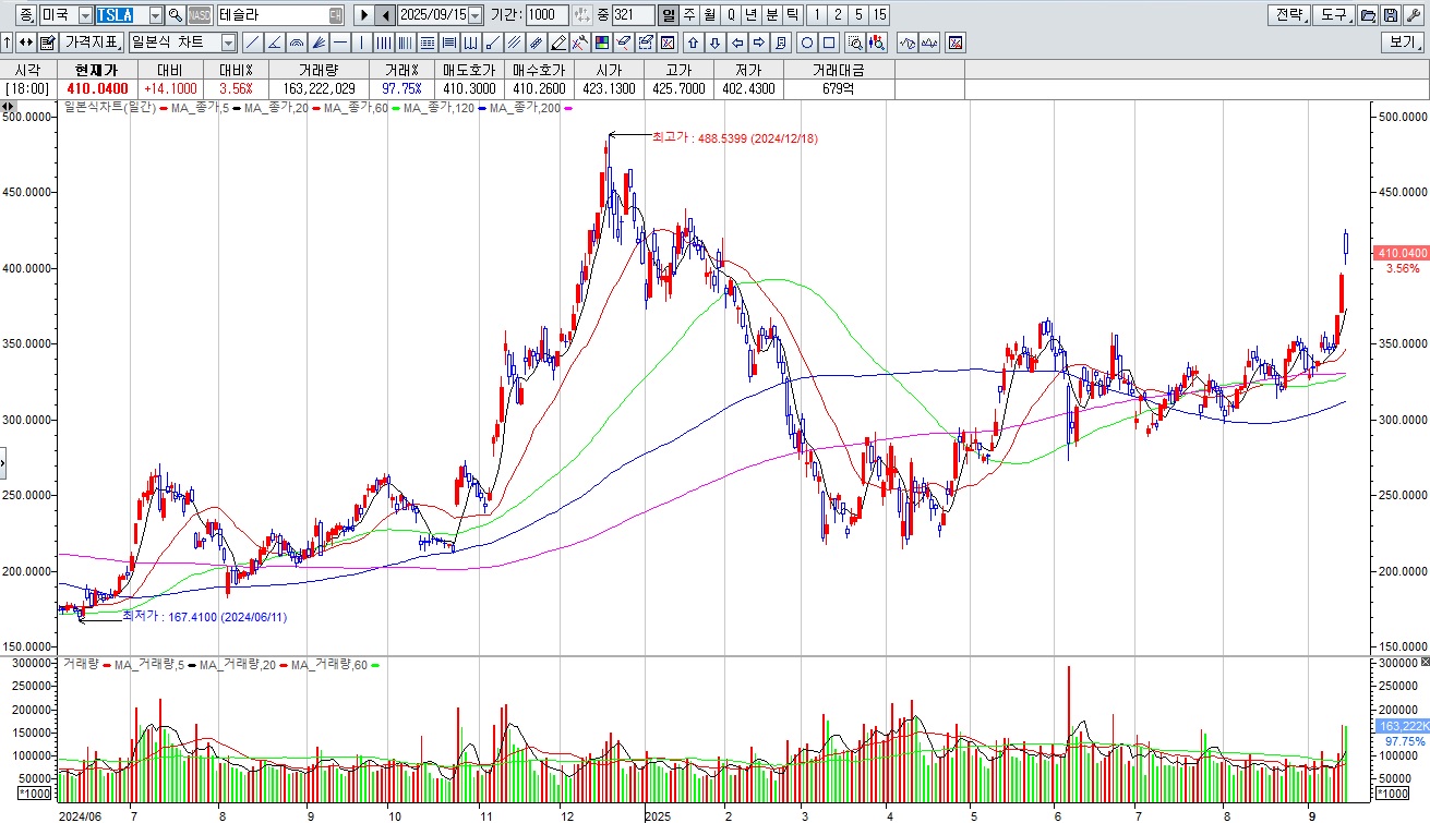| 일론머스크 테슬라주식 1조 4천억원 규모 취득 주가 급등 400불 돌파 (2) | 2025.09.16 |
