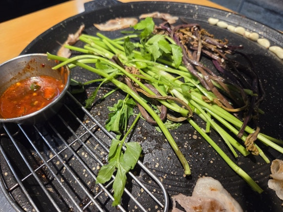 고사리와 미나리를 함께 구워 드시면 더 맛있게 즐길 수 있습니다
