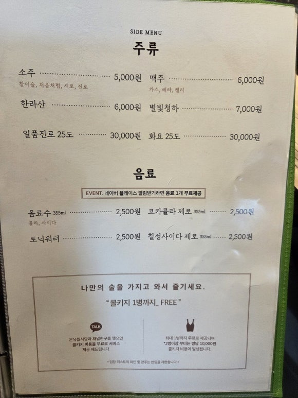 꽃냉삼과 함께 구워 먹을 수 있는 고사리와 콩나물, 김치 등은 셀프로 이용할 수 있어 편하게 가져다 드실 수 있습니다