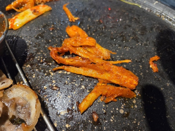 더덕무침을 주문해 고기와 함께 구워 먹었는데 더덕특유의 향이 고기와 잘 어울려 냉삼의 품미를 올려주는 것 같습니다