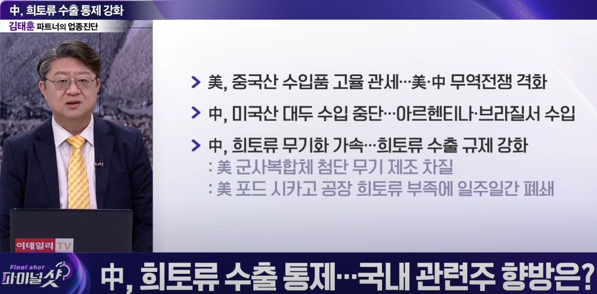 | 이데일리TV 김태훈의 업종진단 2025년 10월 10일 방송 희토류무기화 (0) | 2025.10.11 |