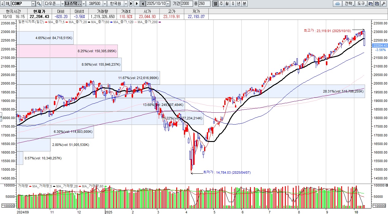 | 미국증시 3대지수 급락 미중무역전쟁 격화와 연방정부 셧다운 장기화 우려 (0) | 2025.10.11 |