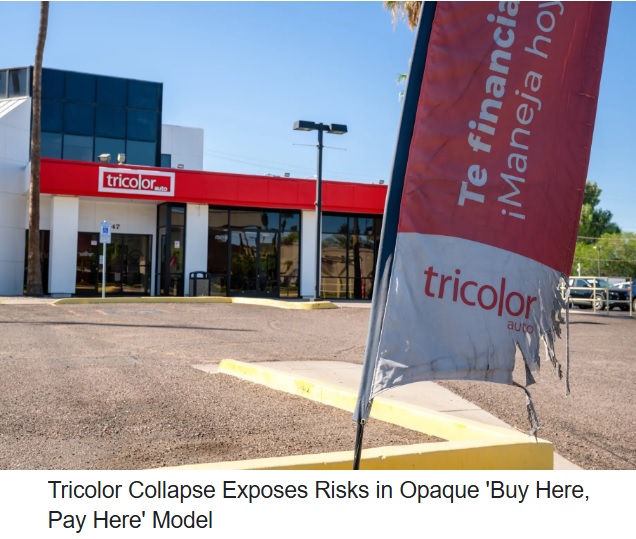 | 달라스 중고차 대출업체 트라이컬러 홀딩스와 자동차 부품업체 퍼스트 브랜즈 연쇄 파산 월가 신용위기 강타 (0) | 2025.10.17 |