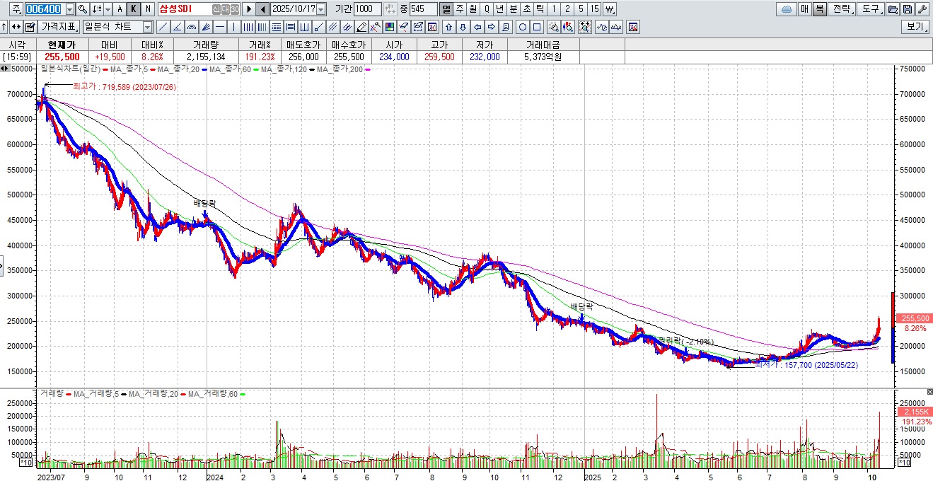 2차전지주들이 한미관세협상 결과에 따라서 자동차주들의 부활과 함께 동반 강세를 나타내고 있는데 LG에너지솔루션과 삼성SDI를 놓고 봐도 고점 대비해 1/6토막난 주가에 여전히 싸보이고 있어 기관투자자들은 자신있게 이런 종목들을 포트폴리오에 담고 있는 모습입니다
