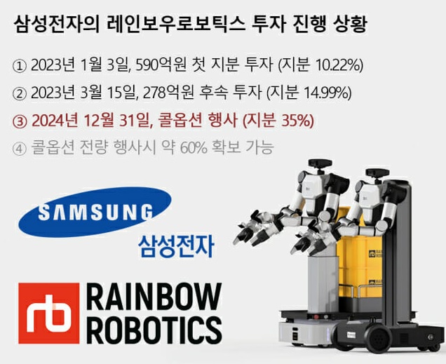 CES 2025를 전후해 삼성전자가 콜옵션을 행사하여 레인보우로보틱스 경영권 지분을 확보한 이후 빠르게 삼성전자 계열사로 모습을 갖춰가고 있습니다