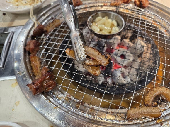 돼지갈비가 숯불이라 금새 잘 익습니다