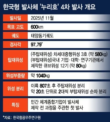 누리호 4호기는 한화에어로가 구성품 참여업체 관리부터 단 조립, 전기체 조립까지 제작 전 과정을 주관해 민간기업이 우주항공산업을 주도하는 상징적인 기회가 될 것 같습니다