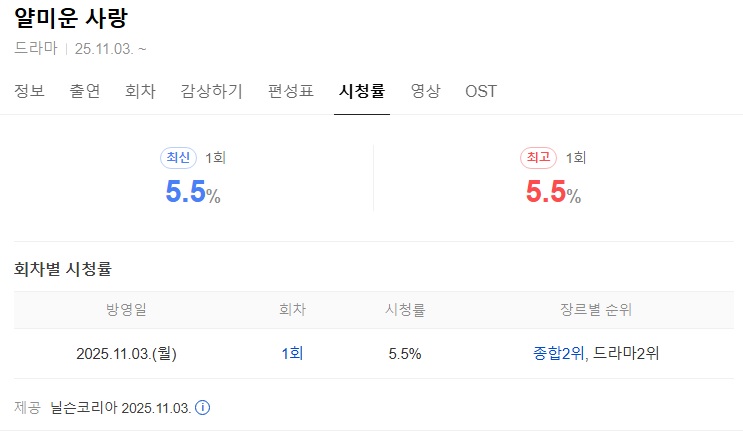 | 아티스트컴퍼니 경영권 분쟁 마무리 공동제작 첫 드라마 "얄미운사랑" 첫방송 (0) | 2025.11.04 |