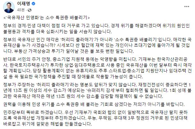 윤석열 정부 시절 국회의원을 지낸 이재명 대통령은 그 당시에 국유재산 헐값매각을 국부유출이라 정의하고 적극적으로 막겠다고 나서 결국 윤석열의 불법 비상계엄의 단초가 되기도 했다는 말이 나오고 있습니다