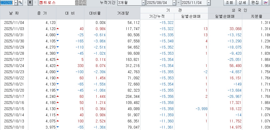 | 켐트로스 주요 고객사 2차전지 업체 LFP배터리 양산 수혜 기대 (0) | 2025.11.04 |