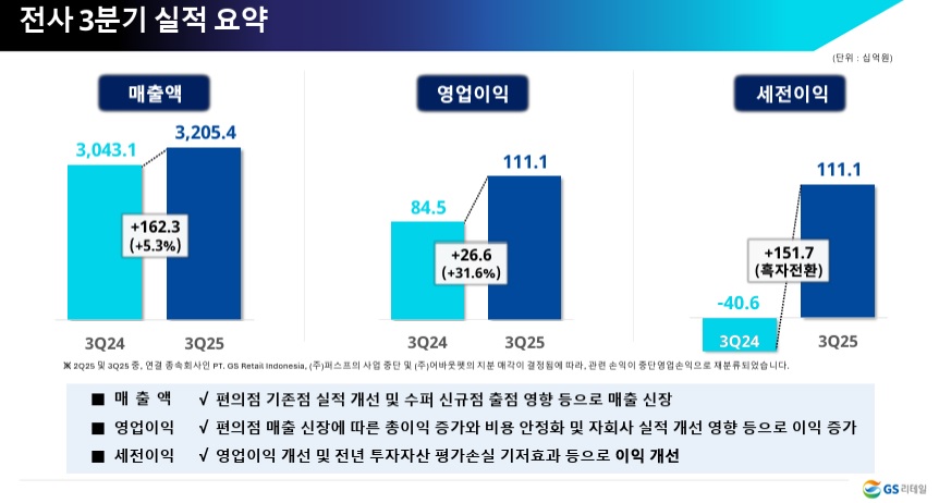 | GS리테일 3분기 실적발표 편의점 사업 호조 분기 기준 사상 최대 매출 달성 (0) | 2025.11.11 |