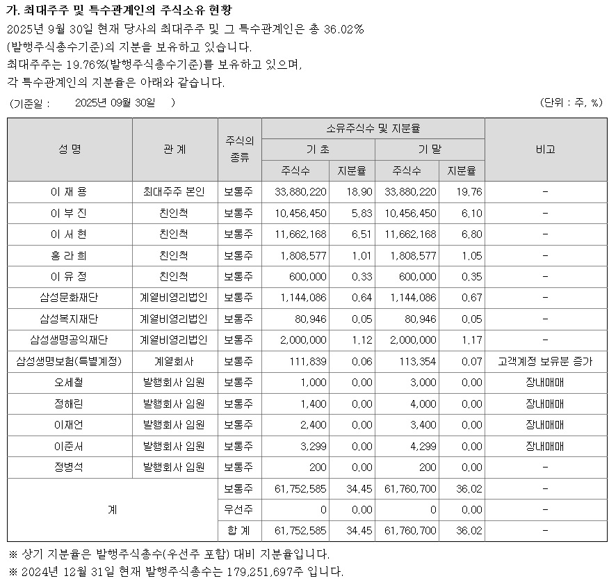 이로써 이재용 회장의 삼성물산 지분율은 20.82%로 올라가게되어 확실하게 단일최대주주로 지배력을 강화할 수 있게 되었습니다