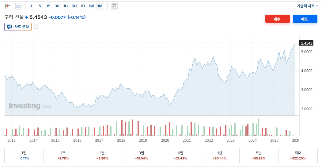 중국 정부가 내수부양책을 꺼내들면서 8일(현지시간) 구리 가격이 사상 최고치를 기록했습니다.