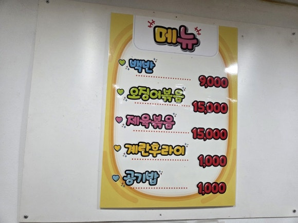 오징어볶음과 제육볶음은 시간이 걸리는 요리라 그런지 추가 주문으로 받는다고 하네요