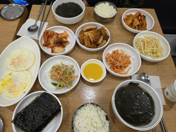 2층에 자리하고 공간이 넓지 않아 테이블이 많지 않기 때문에 점심식사 시간에는 자리 잡기가 쉽지 않지만 아침식사도 판매하고 점심 밥 때를 피하면 자리 잡기가 어렵지 않은 백반집이기도 합니다