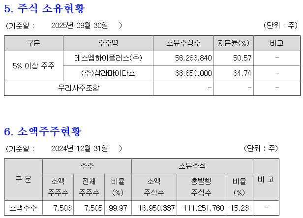 에스엠벡셀 지분매각 후 단일 최대주주는 에스엠하이플러스로 지분을 인수하는 에스엠상선과 동아건설산업은 주요주주로 이름을 올리게 되었습니다