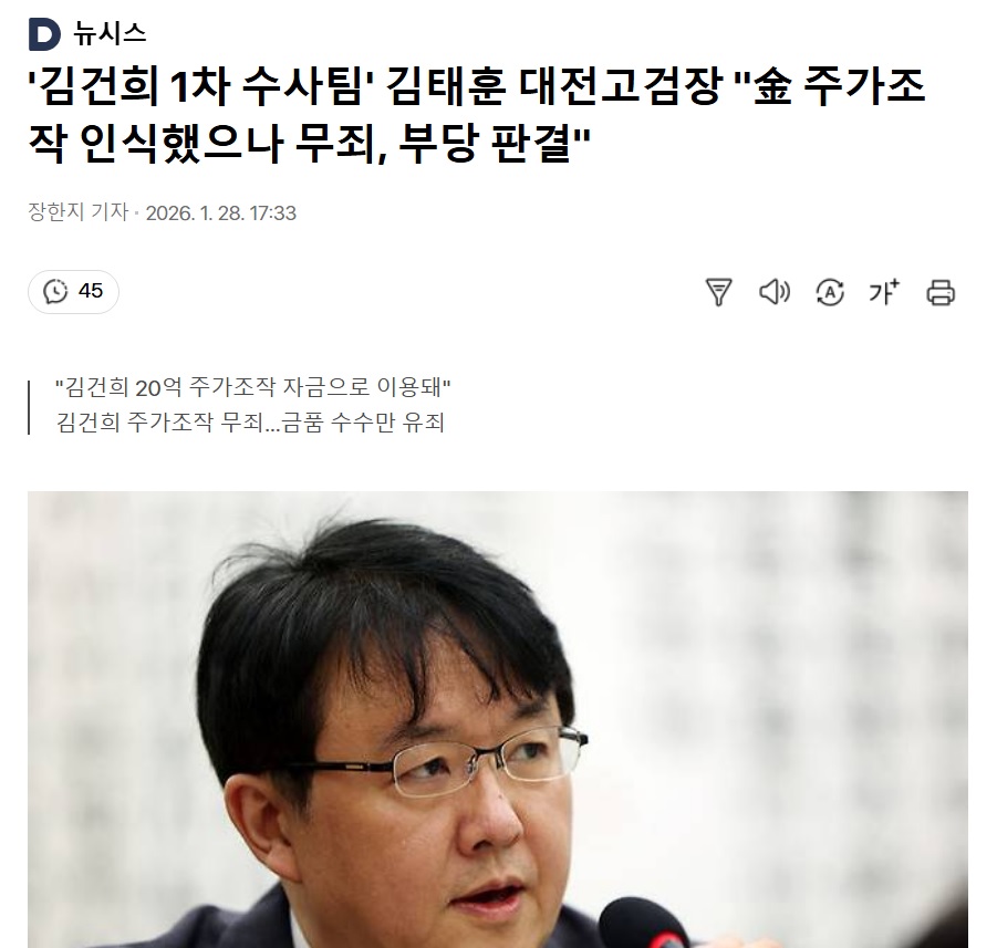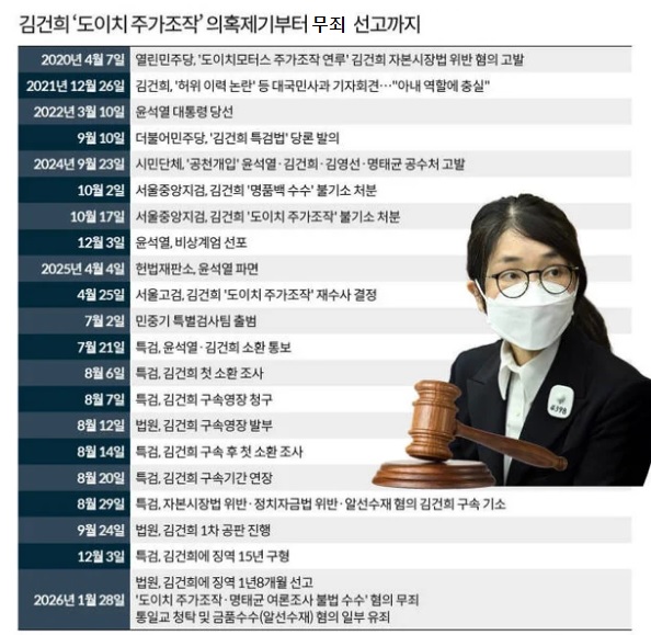 | 김건희 자본시장법·정치자금법 위반, 특정범죄 가중처벌법상 알선수재 혐의 사건 선고 공판 "선수는 처벌해도 전주는 처벌할 수 없다" 판례 (0) | 2026.01.28 |