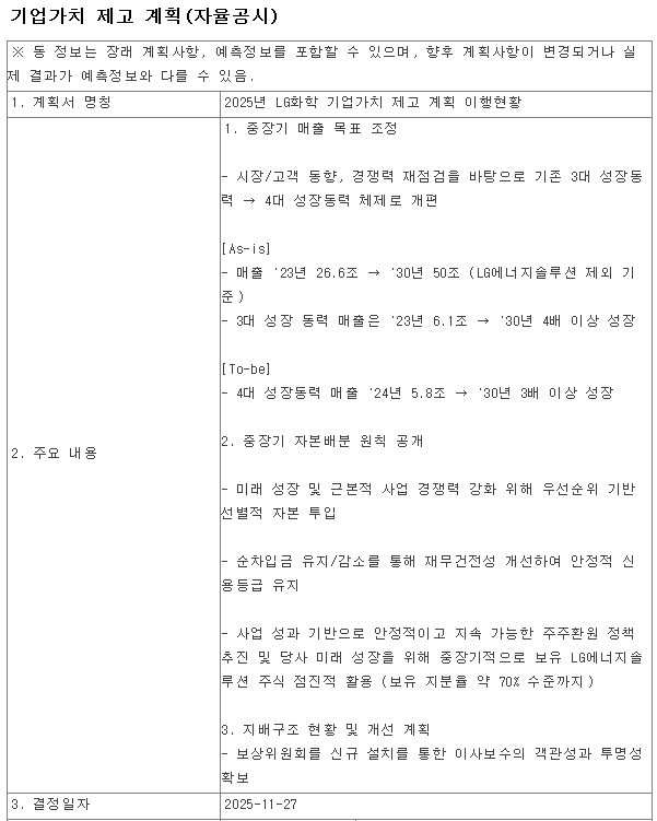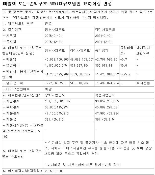 | LG화학 2025년 연간실적발표 영업이익 35% 증가 (0) | 2026.01.28 |