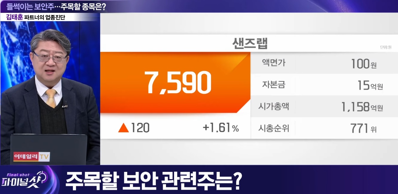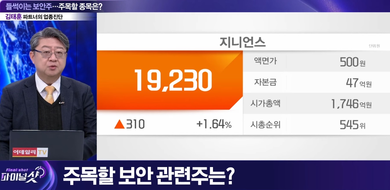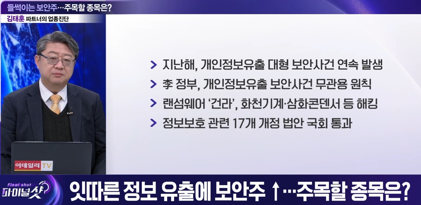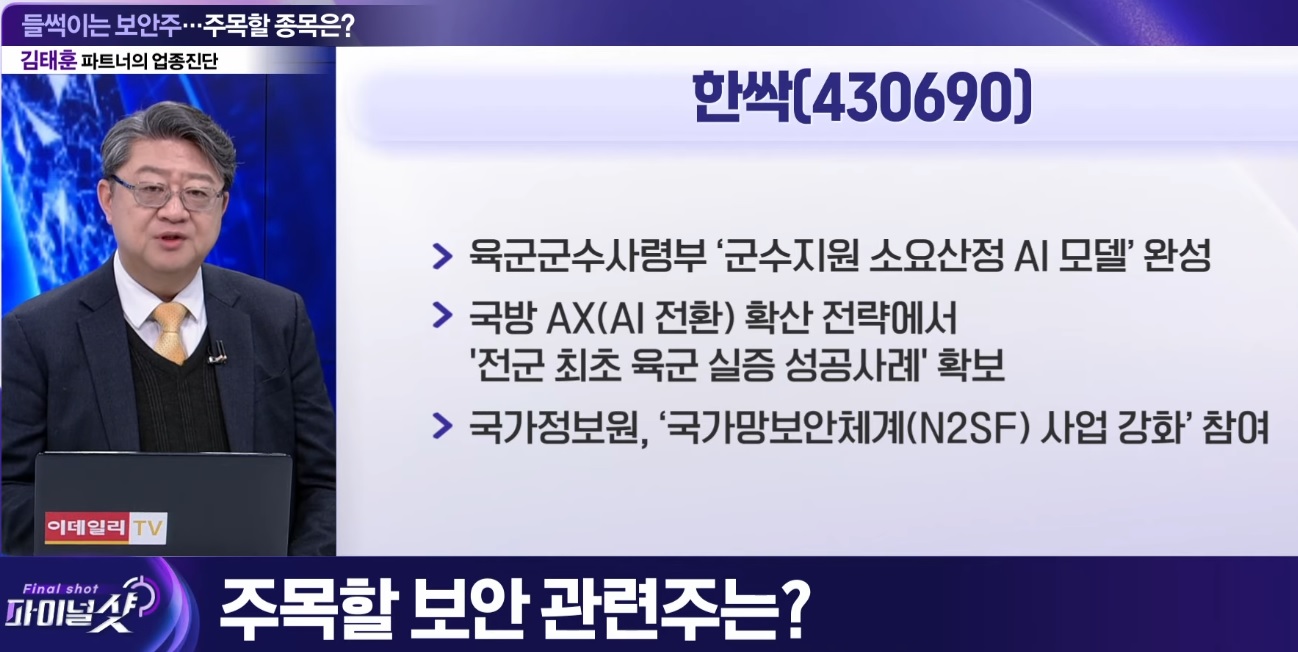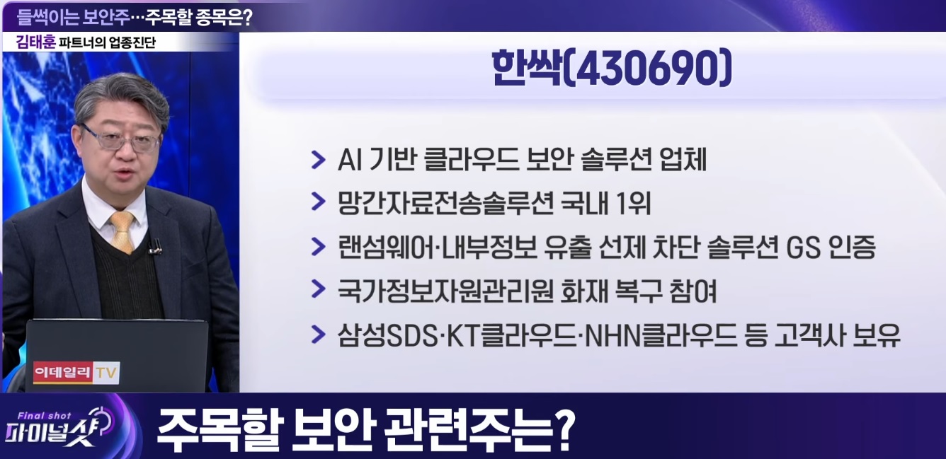 | 이데일리TV 김태훈의 업종진단 2026년 1월 27일 방송 보안주 지니언스 샌즈랩 한싹 (0) | 2026.01.29 |