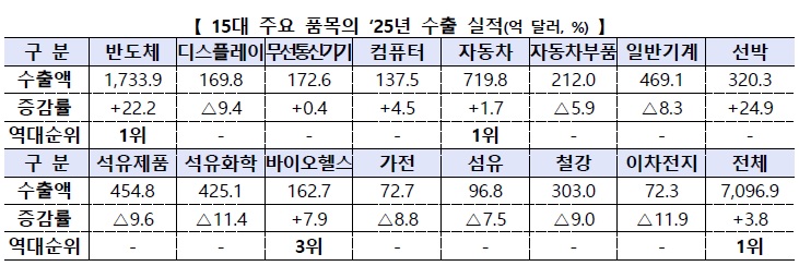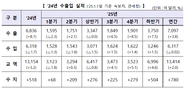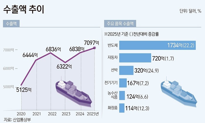 | 2025년 수출 7,000억 달러 돌파 반도체 자동차 수출 견인 (0) | 2026.01.01 |