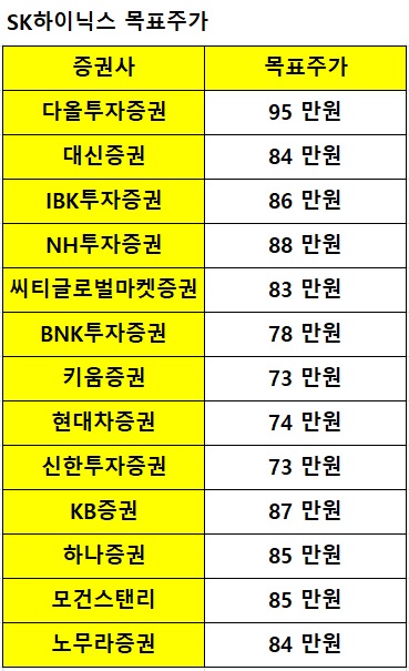SK하이닉스의 지난 해 3분기 기준 적정주가는 76만원으로 평가되고 있고 4분기 실적이 발표되면 목표주가는 더 올라갈 가능성이 커 보이고 이미 증권사들의 목표주가는 랠리를 펼치고 있습니다