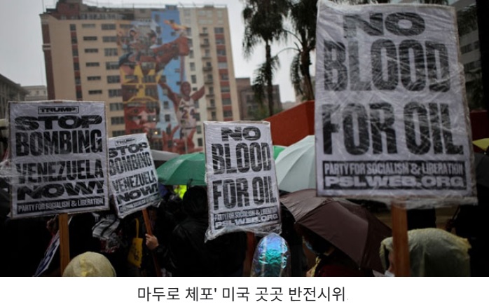 주권국가의 정상을 한 밤중에 체포 납치해 미국 법정에 세울겠다는 미국의 발상에 세계 여러나라들이 유엔 규정 위반에 대해 항의하지만 미국의 이익을 앞세우는 트럼프 앞에서는 소귀에 경 읽기가 되는 것 같습니다