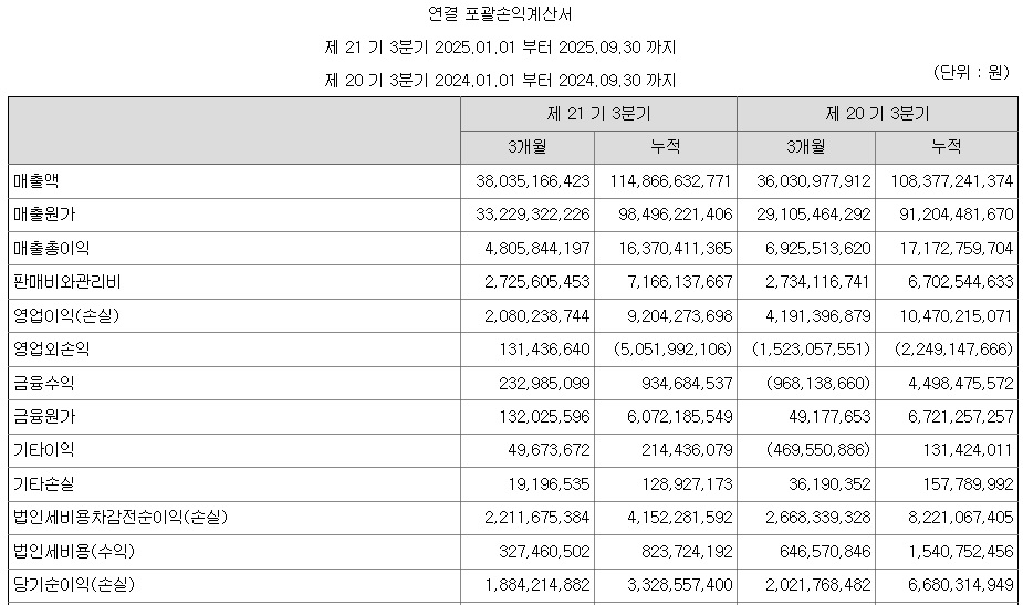 한라캐스트는 지난 해 3분기 기준 매출액 1148억원에 영업이익 92억원을 기록했지만 영업외손익이 급증하면서 당기순이익은 33억원으로 쪼그라든 상황입니다