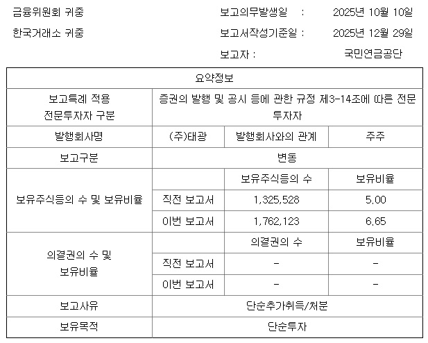태광이 공급하는 피팅 부품은 발전ㆍ플랜트 산업에서 축적한 제작 경험을 바탕으로 원전 배관에 요구되는 구조적 안정성과 내구성을 갖춘 제품으로 평가받고 있는데 원전 신규 건설과 노후 원전 교체 수요가 확대될 경우, 배관과 관이음쇠는 필수적으로 투입되는 기자재인 만큼 태광의 수주 기회도 함께 늘어날 전망이기 때문입니다