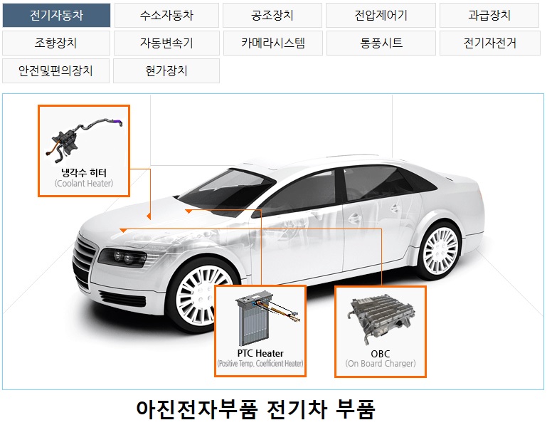 아진전자부품은 현대차와 기아의 1차협력업체가 되면서 전장부품에서 전기차부품업체로 또 한차례 변신하는데 성공하고 있는데 국내 뿐 아니라 미국 현지생산법인을 통해 현대차와 기아에 전기차부품인 승온히터와 PTC히터를 공급하고 있어 성장성에 대한 기대감이 큰 상황입니다