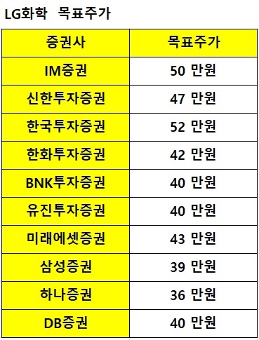 증권사들의 LG화학에 대한 목표주가도 낮아지고 있어 주가 하락은 당분간 이어질 가능성이 커 보입니다