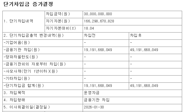 | 루닛 2000억원 규모 주주배정 유무상증자 실시 단기차입금 증가 주가 폭락 희망고문 지속 (0) | 2026.01.30 |