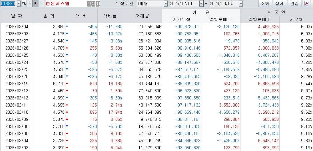 | 한온시스템 중동위기 시장리스크로 주가 급락 외국인투자자 저가매수세 유입 중 (0) | 2026.03.04 |