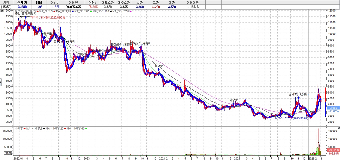 지금의 주가 폭락은 개별종목의 위기보다는 시장리스크라고 할 수 있는데 개별기업의 펀더멘탈은 그대로인데 시장 외적인 요인인 미국의 이란 공습으로 에너지 위기가 촉발되었기 때문입니다