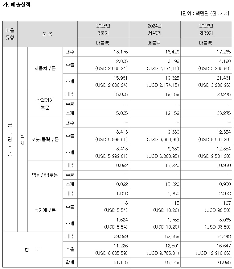 주력사업은 자동차단조부품과 산업기계용 단조부품을 주문 제작하여 공급하고 있어 성장성이 큰 로봇과 풍력발전시장에서 핵심부품인 감속기를 개발하여 공급하고 있어 성장성에 대한 기대감을 갖게하고 있습니다