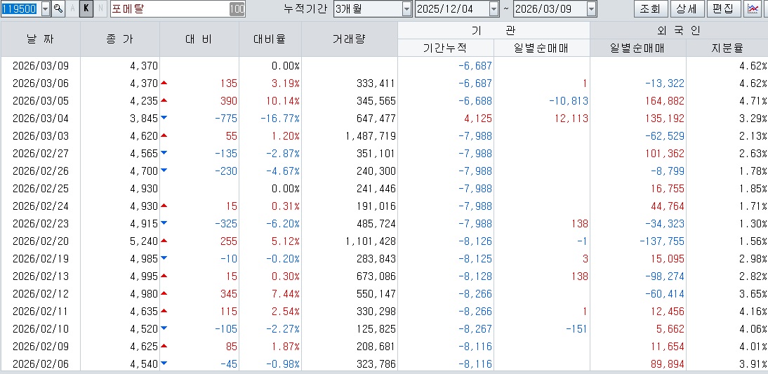포메탈의 2025년 연간실적에 대한 적정주가는 5,500원으로 어닝서프라이즈를 기록했고 이를 1월초 주가에 일부 반영하는 흐름을 보였는데 3분기 분기보고서 상 수주잔고의 소진은 향후 실적에 대한 불확실성을 높이고 있어 주가도 조정양상을 보이고 있습니다