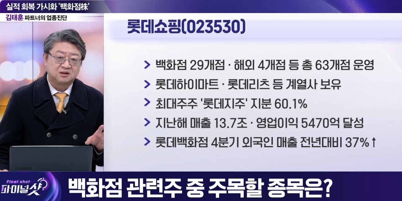 롯데쇼핑의 지난해 매출액은 13.7조원으로 영업이익은 5470억원을 달성하였고 롯데백화점 지난해 4분기 외국인 매출액은 전년 대비 37% 증가하는 수치를 보여주었습니다