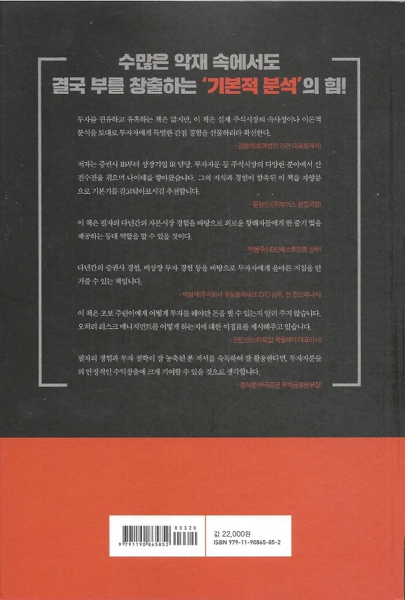 아울러 현명한 투자자로 주식시장에서 오랜동안 수익을 꾸준히 내면서 부를 쌓아가는 장기투자자가 될 수 있도록 제 책이 도움이 되었으면 좋겠다는 생각을 하고 있습니다