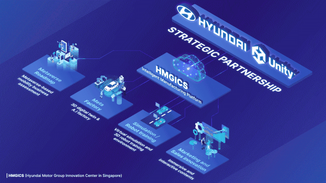 현대차는 6일(현지시간) 미국 라스베이거스 컨벤션 센터에서 열린 세계 최대 IT·가전 전시회 'CES 2022'에서 유니티와 '미래 메타버스 플랫폼 구축 및 로드맵 마련을 위한 전략적 파트너십'을 체결했다고 발표했는데 유니티는 글로벌 메타버스 환경 구축 및 실시간 3차원 콘텐츠 개발·운영 플랫폼 회사입니다.
