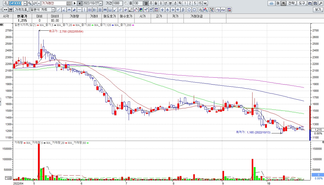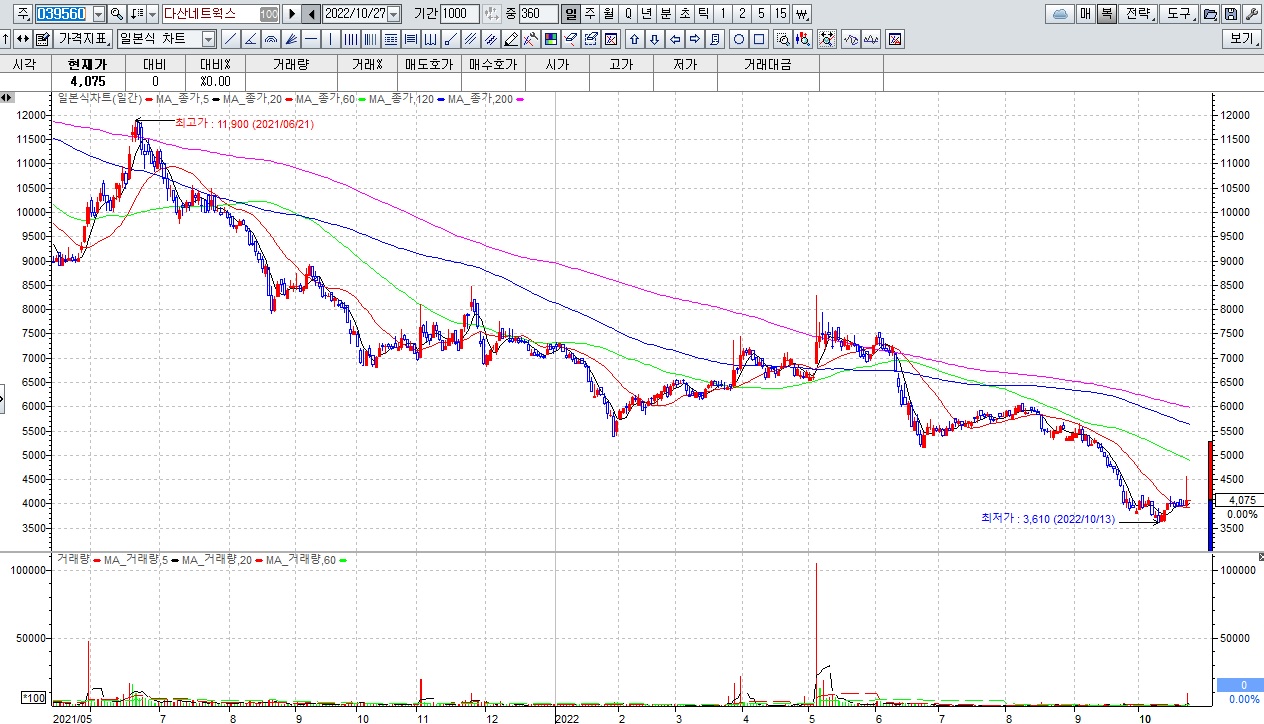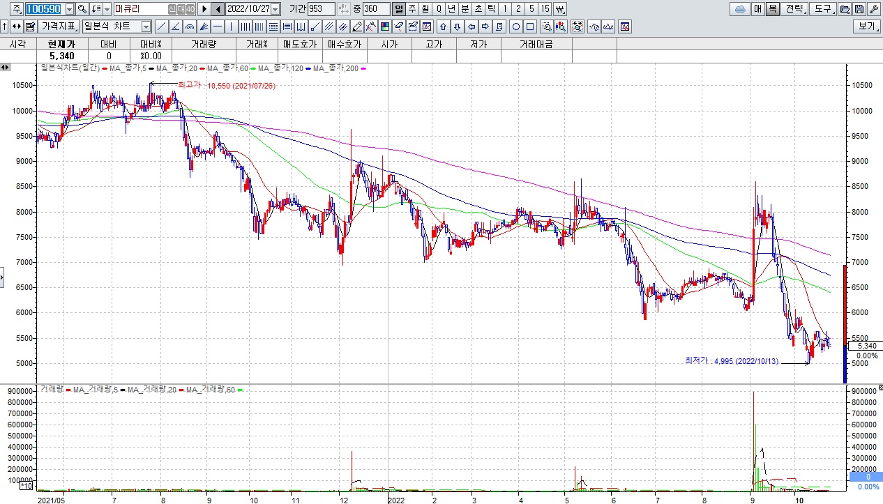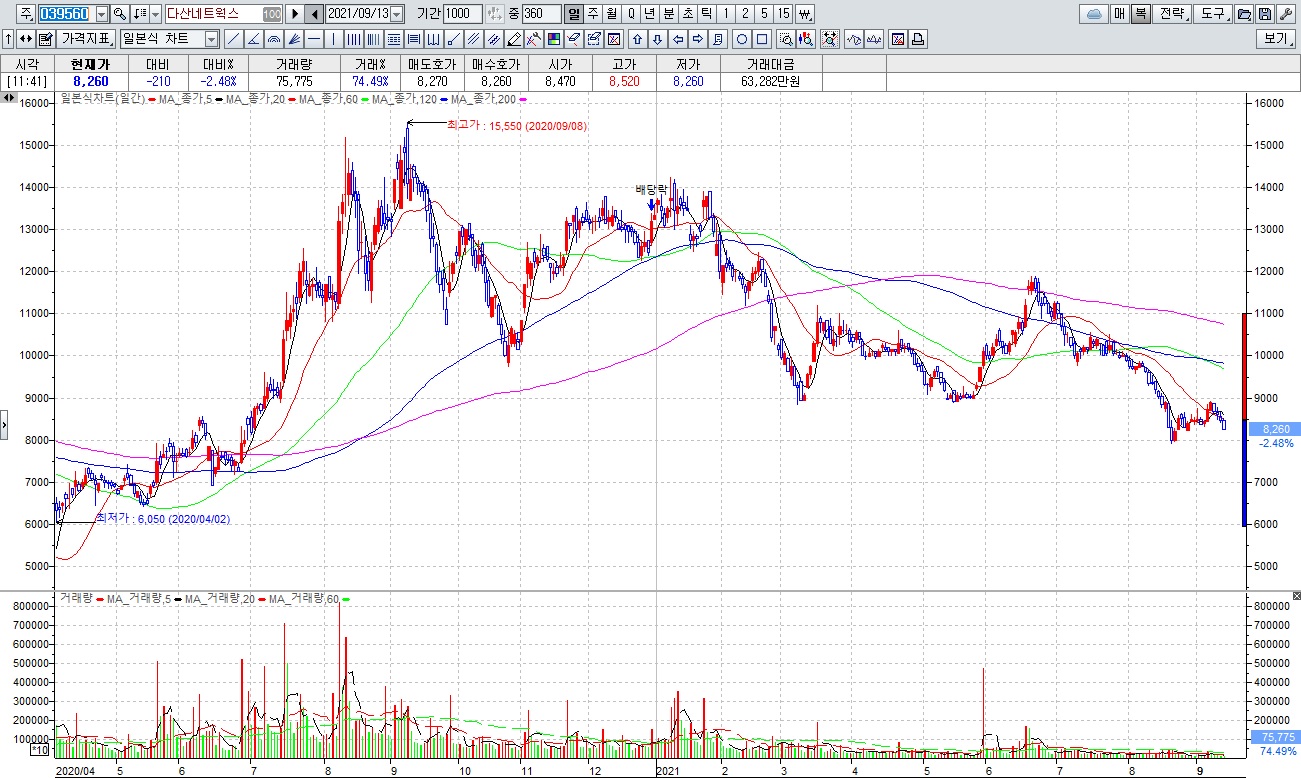5G통신 장비들에 대한 투자수요는 있지만 코로나19 델타변이 바이러스의 재확산에 실제 투자는 여전히 미뤄지고 있어 실적호전이 더 늦어질 것이라는 우려감에 주가가 흘러내리고 있는 상황입니다