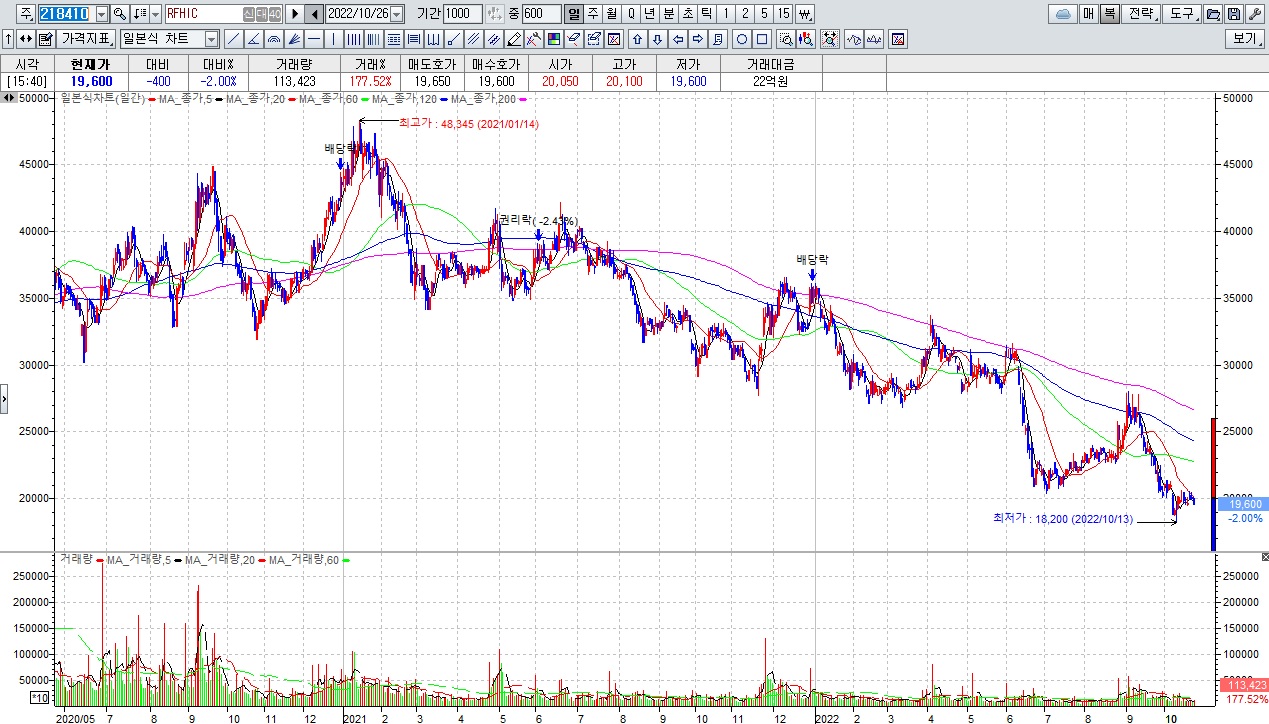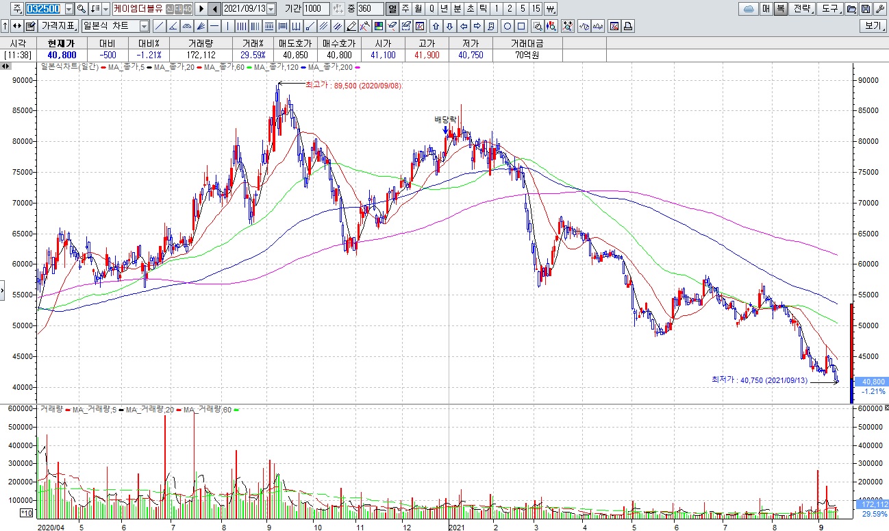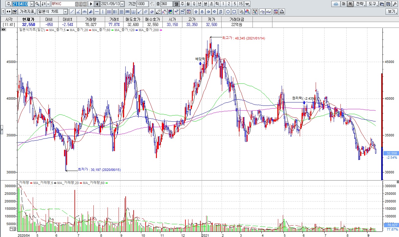 5G통신 장비들에 대한 투자수요는 있지만 코로나19 델타변이 바이러스의 재확산에 실제 투자는 여전히 미뤄지고 있어 실적호전이 더 늦어질 것이라는 우려감에 주가가 흘러내리고 있는 상황입니다